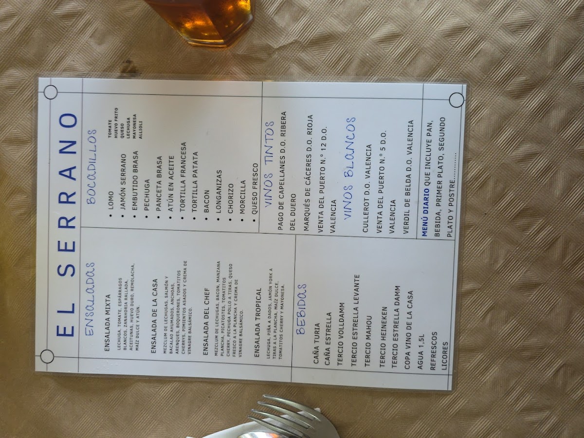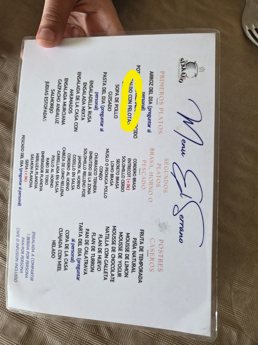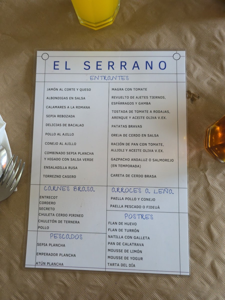 Restaurante El Serrano Menu